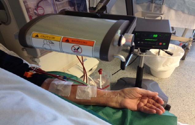 A native arterio-venous fistula (AVF) is considered the best alternative for access in patients on chronic hemodialysis(HD). However, its patency is often limited, because of complications, suchas stenosis, thrombosis and infection. Both surgical and medical methods have been evaluated to avoid often painful and costly interventions. In recent years a few studies from the same center have shown positive effects on blood flow and patency of repeated Far Infrared light(FIR) over the AVF.